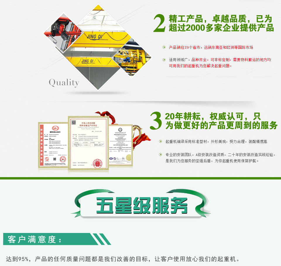 有需求才見(jiàn)專業(yè),有需求才見(jiàn)服務(wù),靖江起重專業(yè)的技術(shù)團(tuán)隊(duì)生產(chǎn)出來(lái)的起重機(jī)質(zhì)量非常好;產(chǎn)品性能優(yōu)良,質(zhì)量